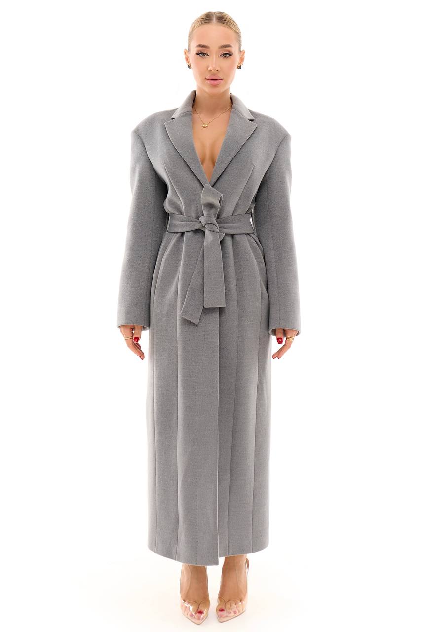 Пальто TALIYA сіре — елегантна класична модель, що підкреслює жіночність і додає образу стриманої розкоші. Лаконічний крій і пояс на талії формують витончений силует, а довжина створює ефект візуально подовженого образу. Матеріал виглядає акуратно, добре тримає форму та забезпечує комфорт у прохолодну погоду.