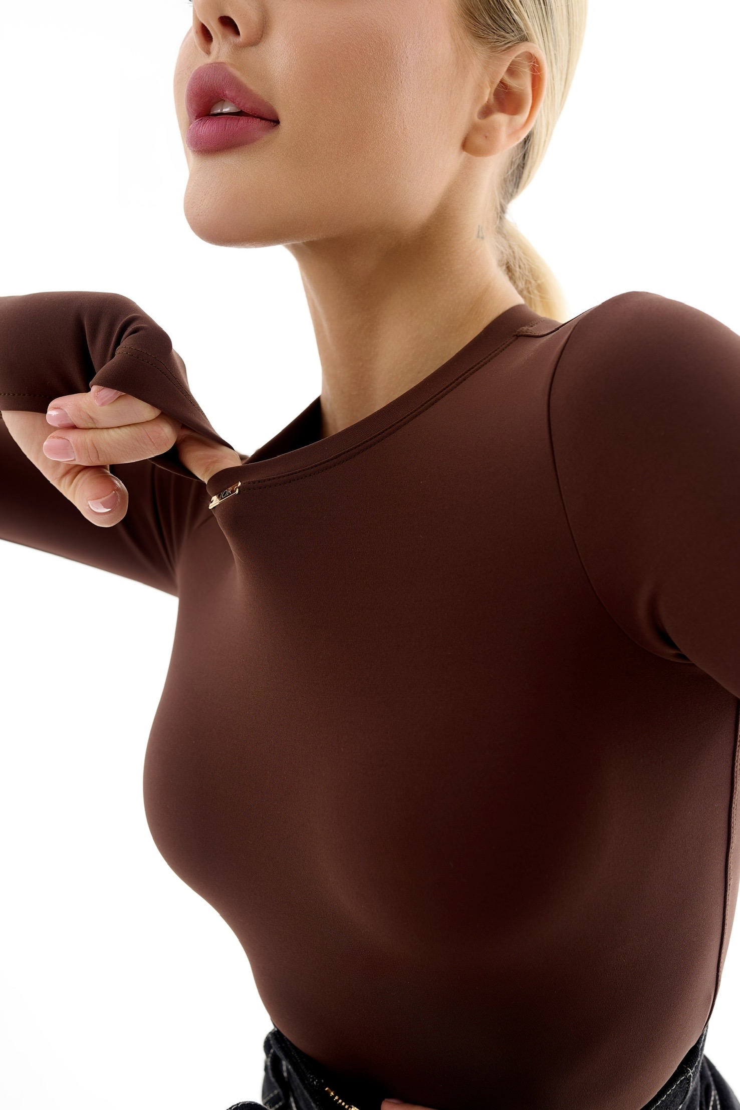 Шоколадний боді MARK — базова модель з акцентом на силует та бездоганну посадку. Глибокий шоколадний відтінок додає образу благородності та легко поєднується як з денімом, так і з класичними брюками чи спідницями.