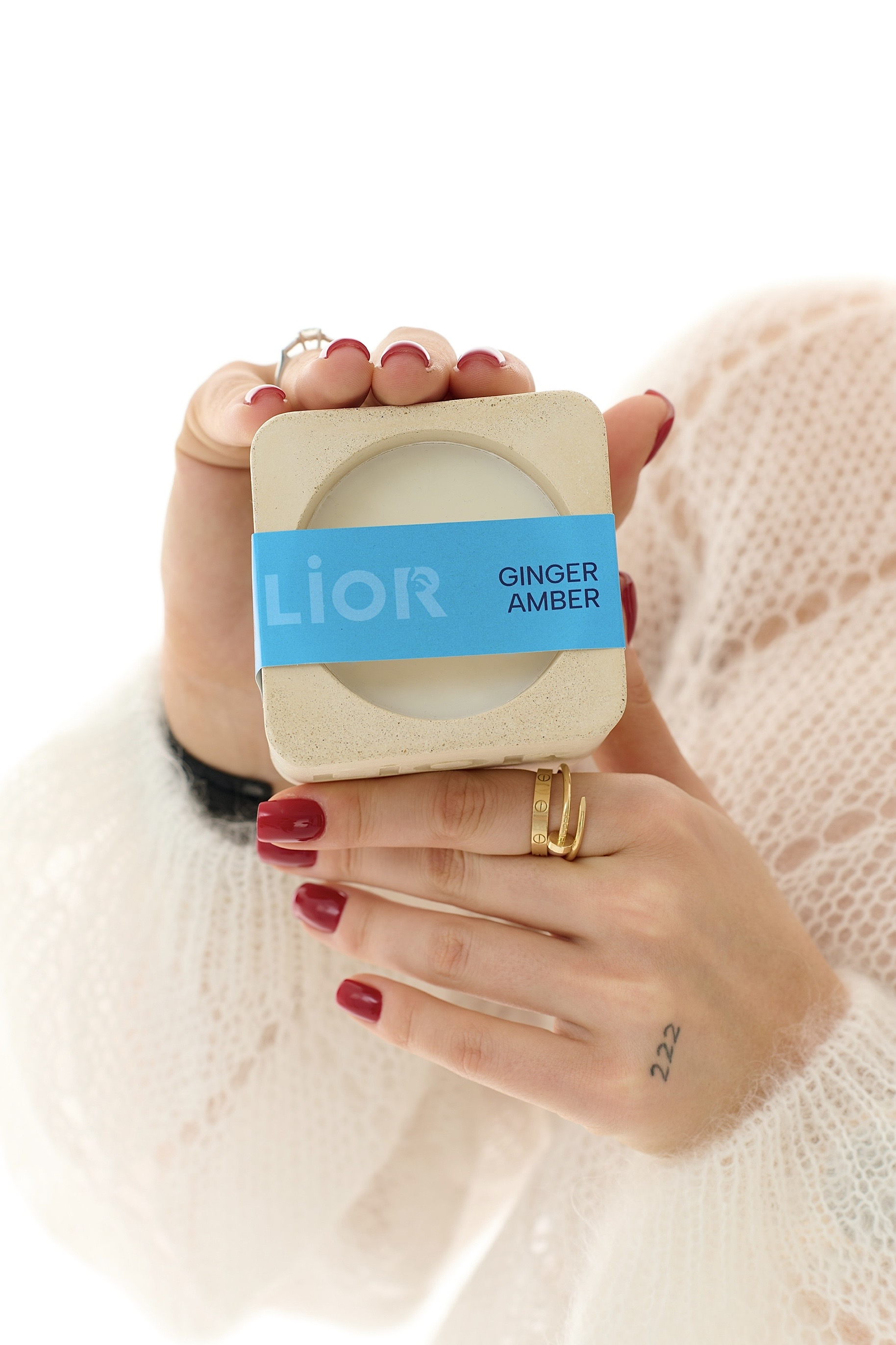 Аромасвічка GINGER AMBER — це про атмосферу, в якій хочеться залишитися довше. Вона наповнює простір м’яким теплом і витонченим ароматом, створюючи відчуття затишку та внутрішнього спокою. Свічка розміщена в стильному кубічному підсвічнику ручної роботи з екологічного бетону ніжного кремового відтінку — мінімалістичний акцент, що додає інтер’єру характеру.