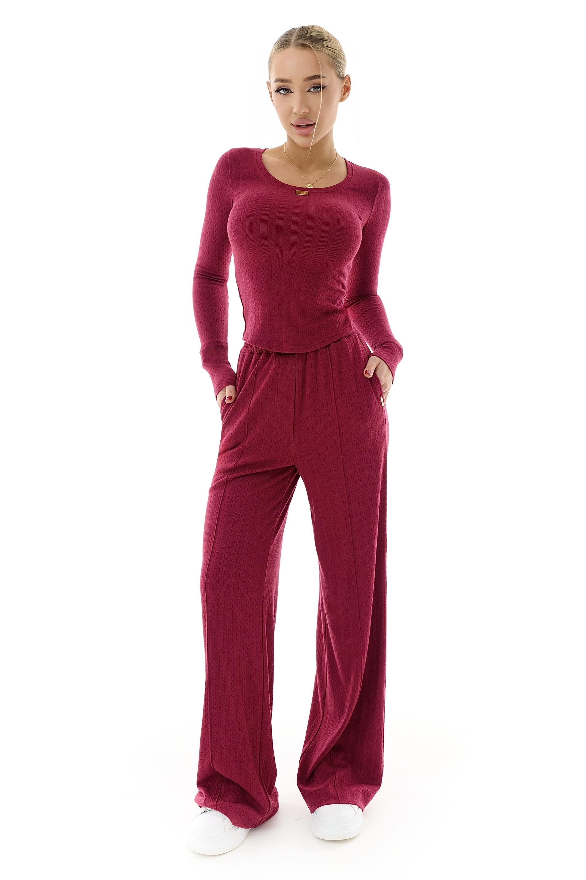 Жіночий лонгслів виконаний із м’якого фактурного трикотажу, який приємно прилягає до тіла та підкреслює силует. Модель має класичний круглий виріз та довгі рукави, що робить її універсальною для щоденних образів. Акуратний декоративний елемент із логотипом додає виробу витонченого акценту.