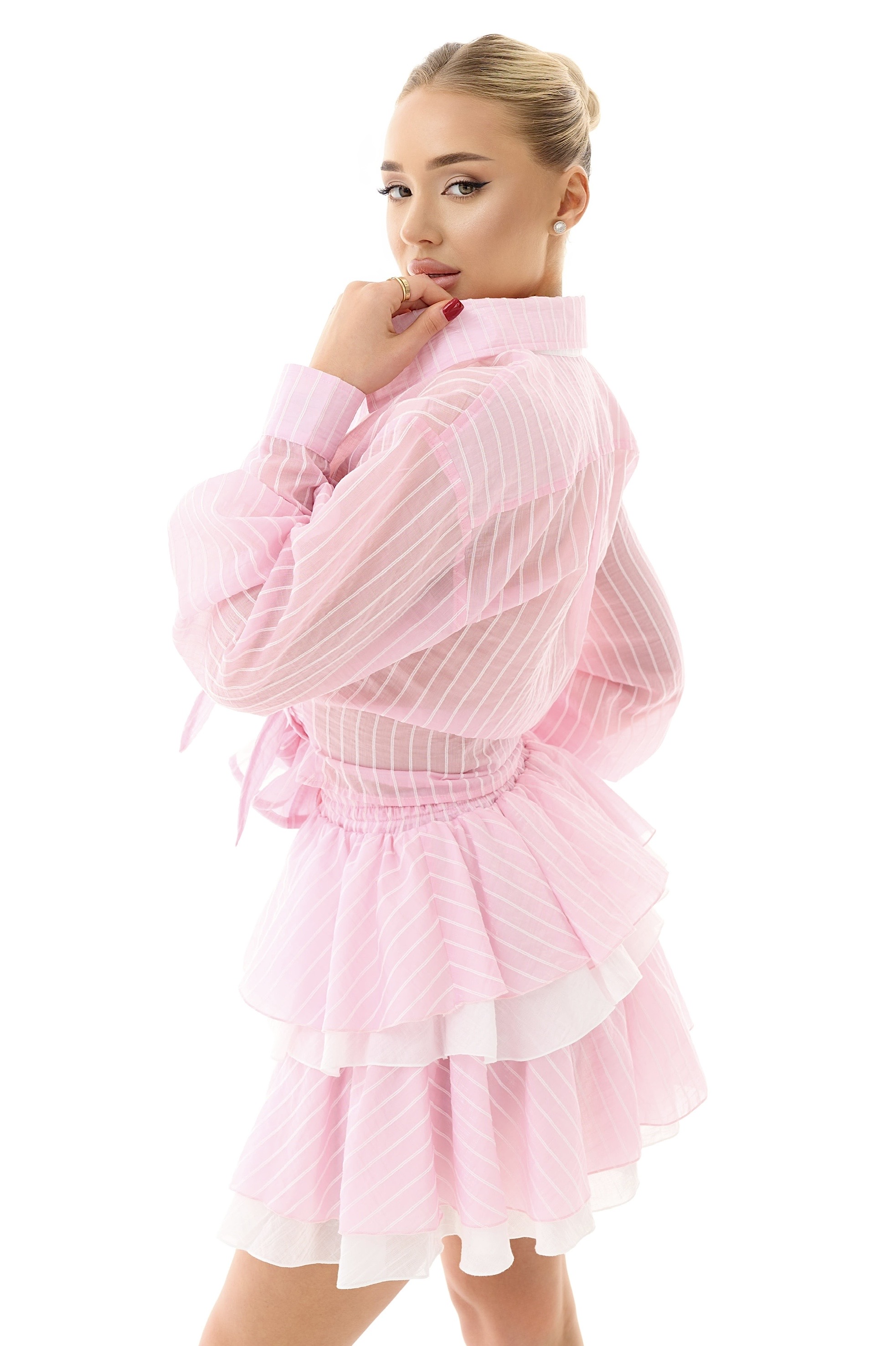 Рожева спідниця MURMUR — це квінтесенція грації, витонченості та вишуканого смаку. М'який, немов цукрова вата, відтінок надає образу особливої магії та невинності, роблячи цю модель ідеальним вибором для особливих подій, романтичних побачень або створення елегантних міських луків. Вона перетворює кожен ваш крок на легкий танець, привертаючи захоплені погляди.