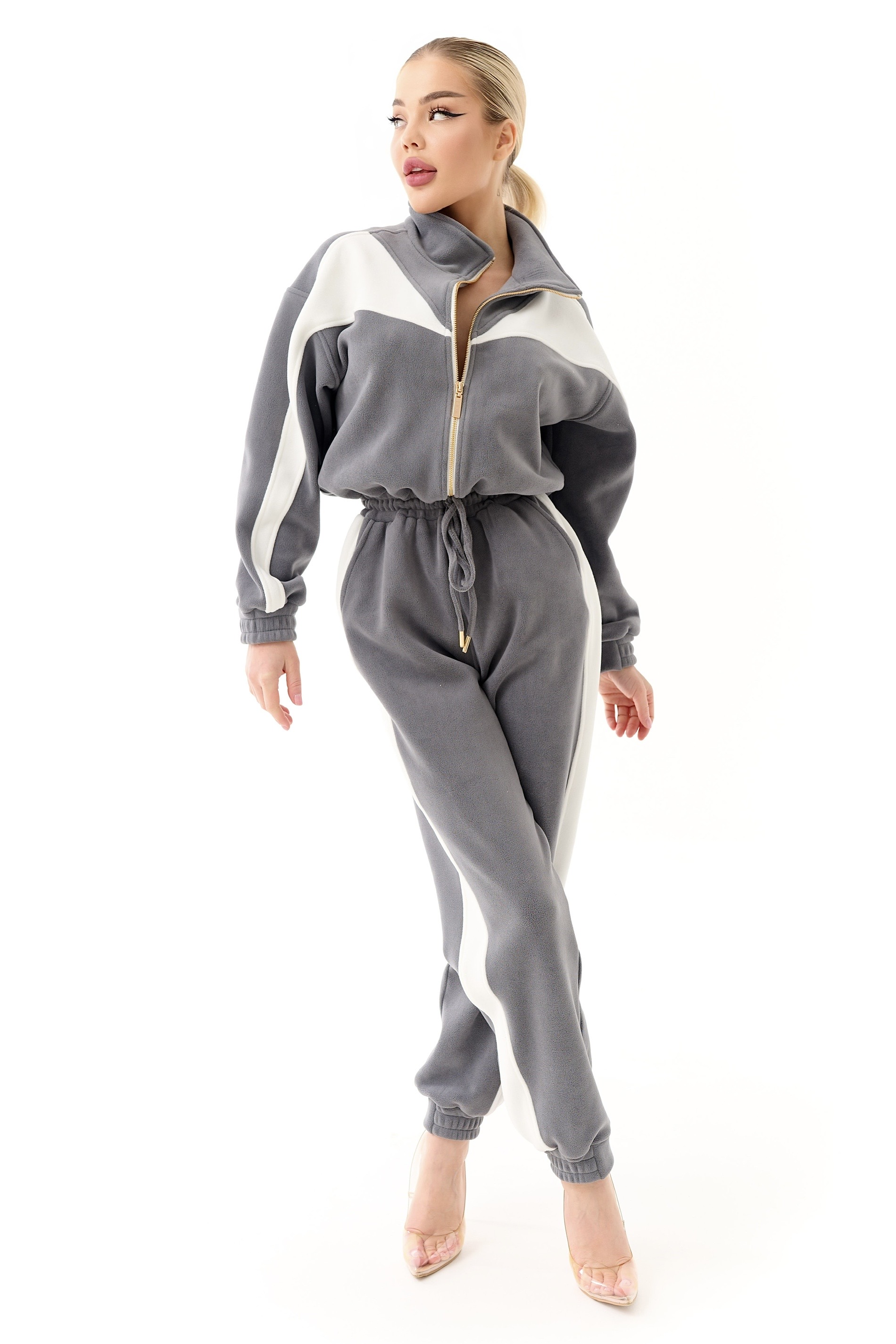 Теплий флісовий комбінезон SAMPLE SALE сірий із молочними вставками