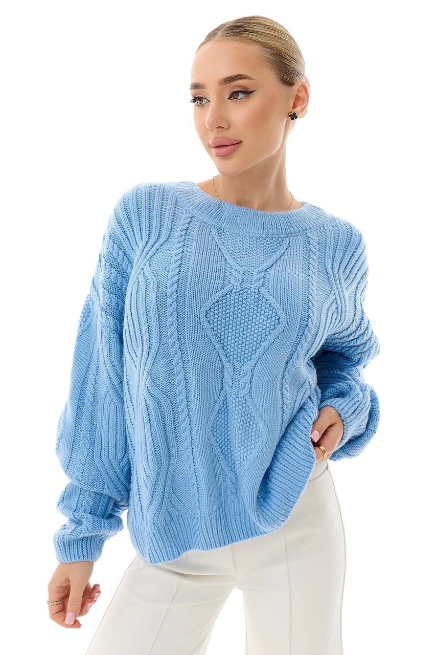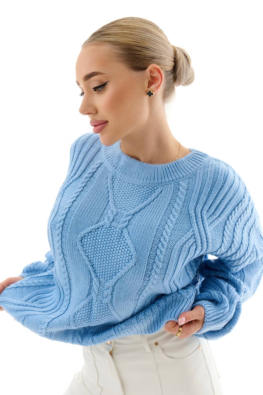 Свитер из натуральной шерсти мериноса в нежном голубом оттенке – это сочетание премиального качества, тепла и утонченного стиля. Объемная вязка с рельефным узором придает фактурность и делает модель акцентной частью образа.