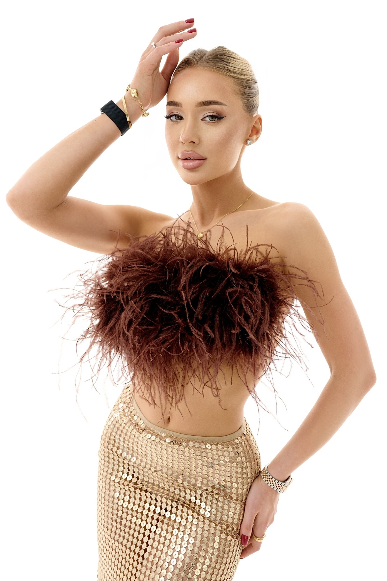 Топ STRAUSS BURLESQUE шоколад — это воплощение утонченной эстетики и современного комфорта. Глубокий шоколадный оттенок придает модели благородство, делая её идеальной базой для создания как повседневных, так и вечерних образов. Благодаря лаконичному дизайну и безупречной посадке, этот топ подчеркивает естественные линии тела, создавая изящный и женственный силуэт.