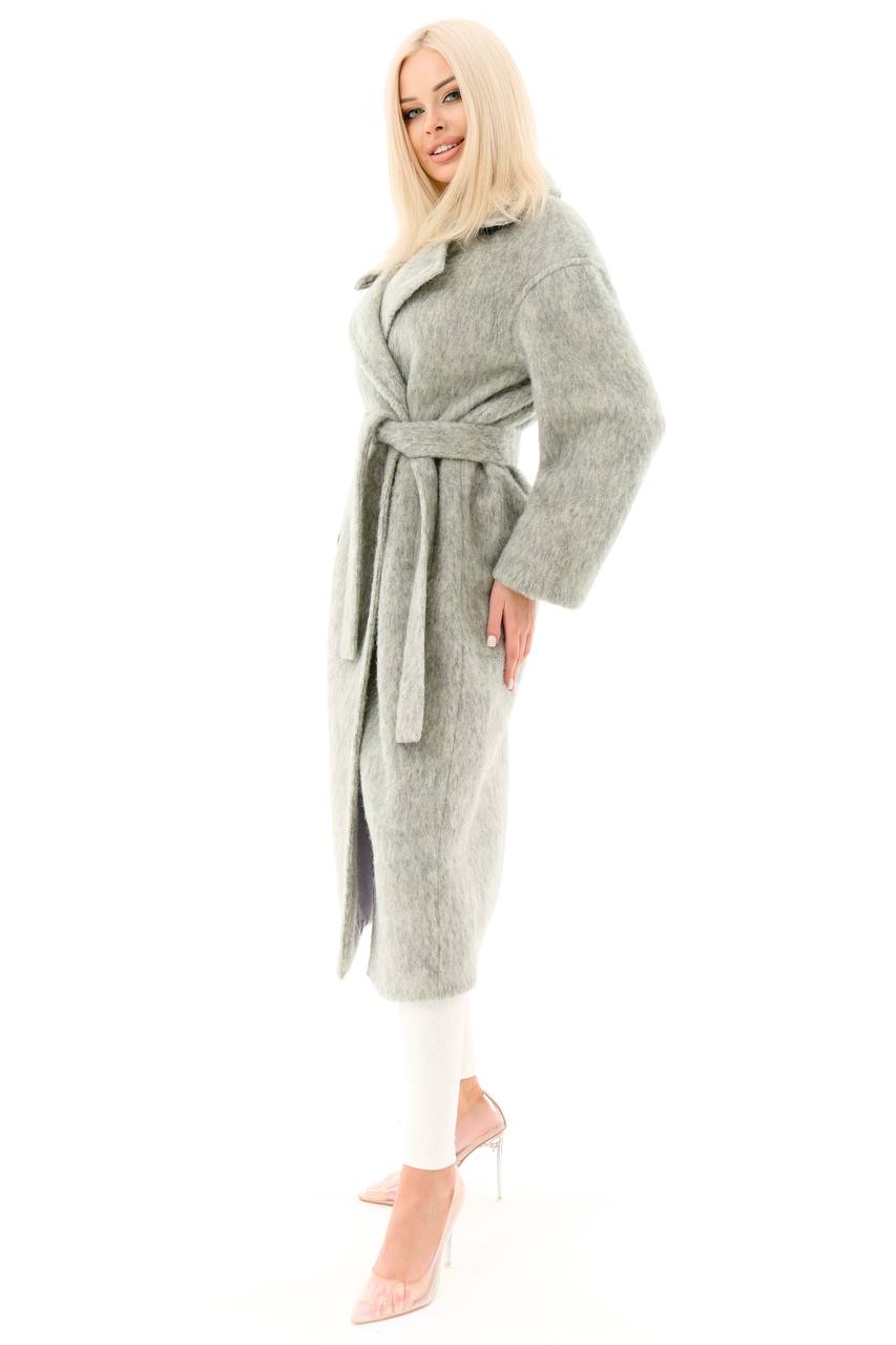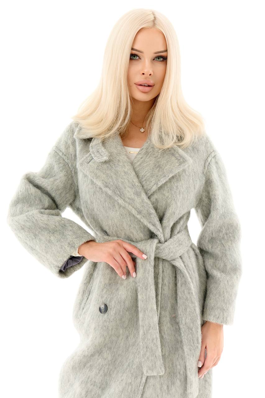 Удлиненный крой зрительно вытягивает силуэт, а пояс в комплекте позволяет красиво подчеркнуть талию и создать женственный акцент. Объемный лацкан и аккуратная посадка придают изделию статусность и универсальность — пальто идеально подходит как для деловых образов, так и для повседневного стиля.