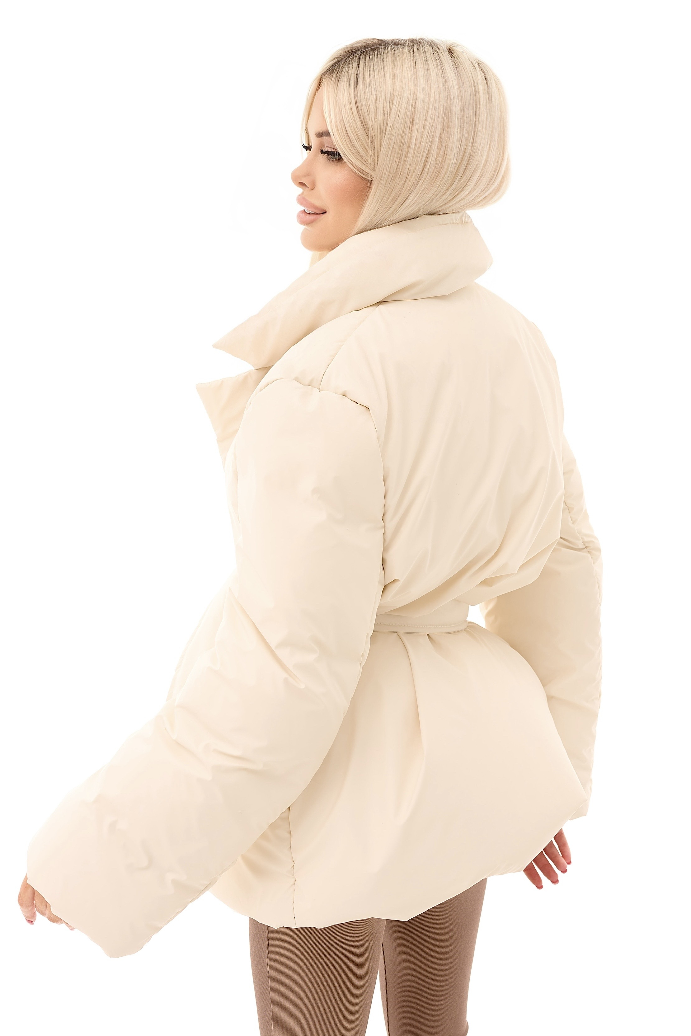 Элегантный пуховик в нежном молочном оттенке — стильное решение для холодного сезона. Модель сочетает тепло и женственный силуэт благодаря широкому поясу, который подчёркивает талию и формирует аккуратный образ.