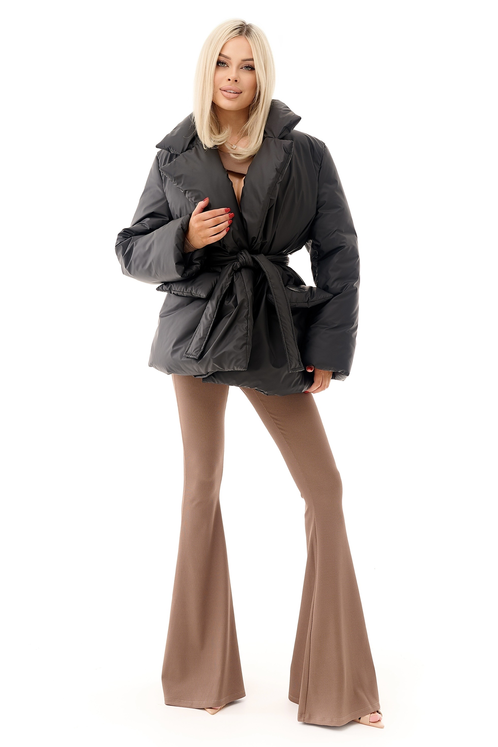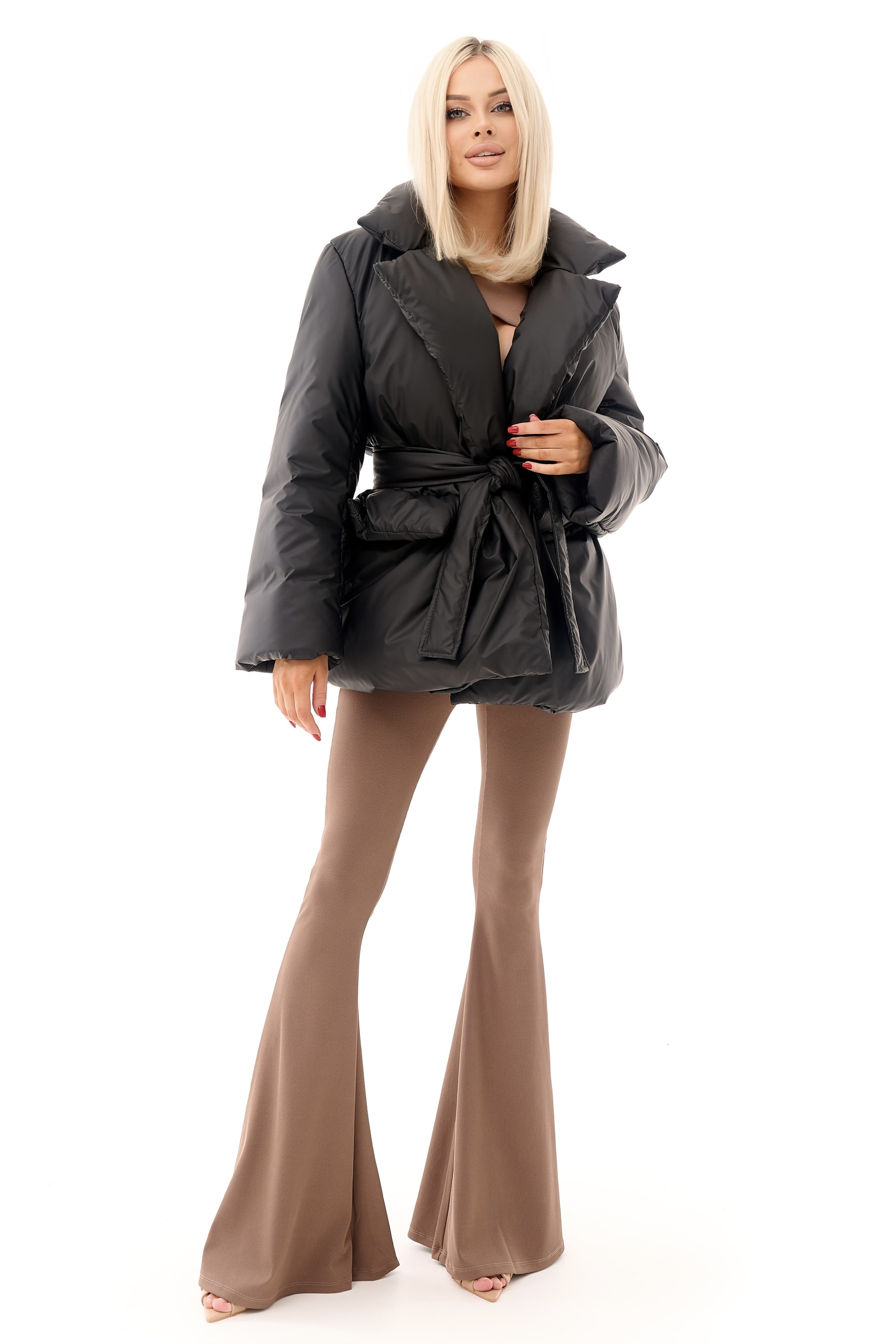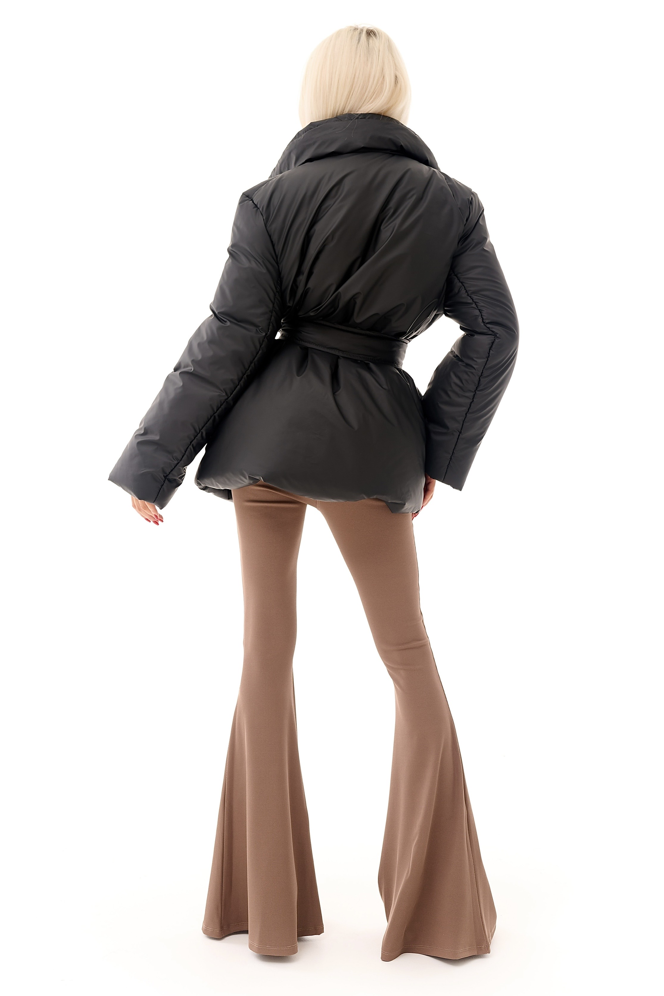 Стильний короткий пуховик у базовому чорному кольорі — поєднання тепла, комфорту та актуального силуету. Модель має об’ємний крій і широкий пояс, який підкреслює талію та формує жіночний силует навіть у зимовому одязі.