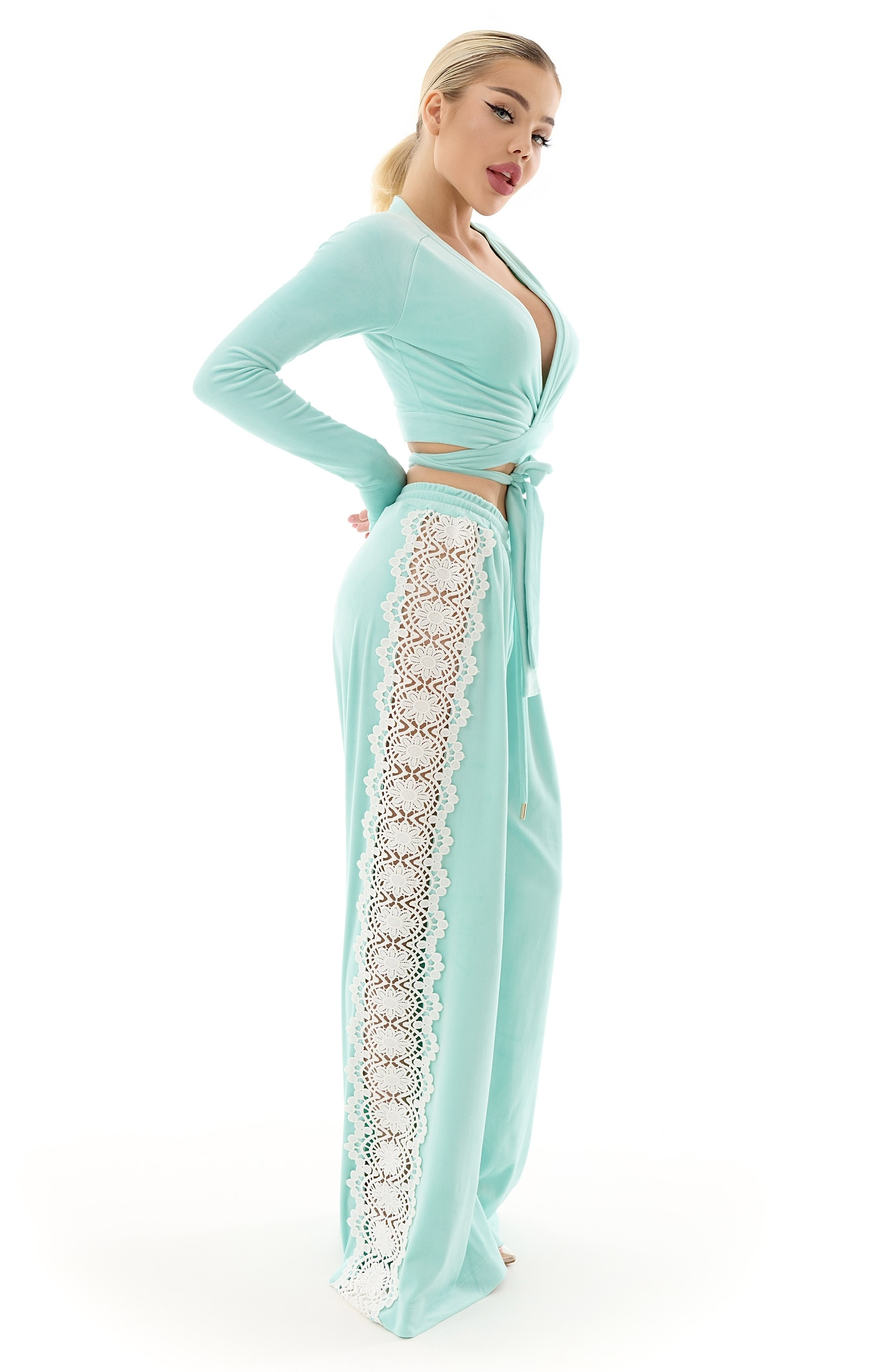 Стильні та комфортні штани LIOR у ніжному м’ятному відтінку — ідеальна база для створення ефектного, але водночас розслабленого образу. Вільний крій красиво струмує по фігурі, подовжує силует і забезпечує максимальний комфорт у русі.