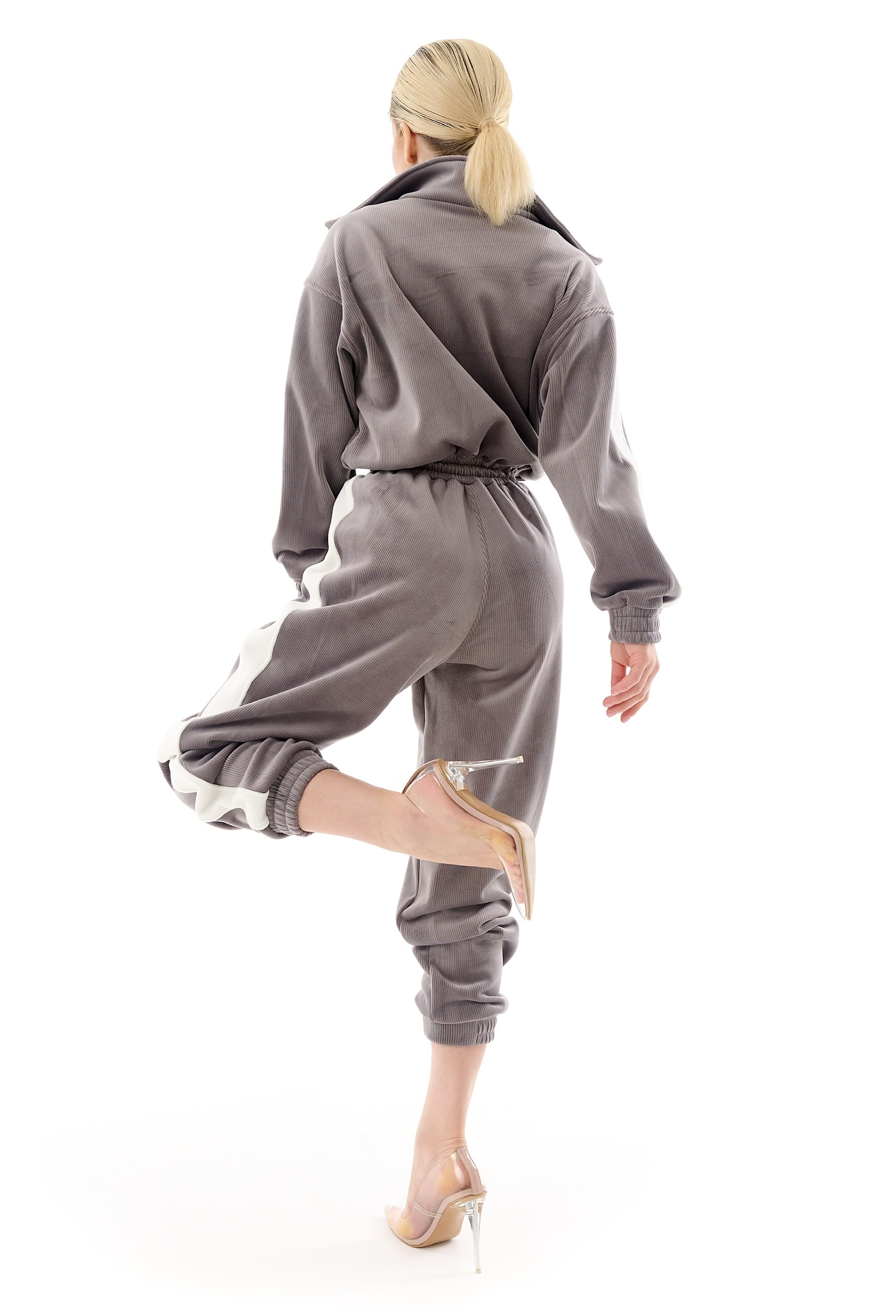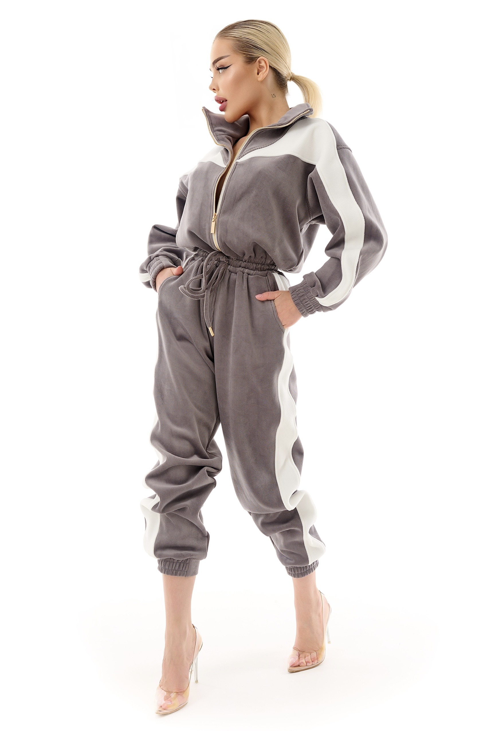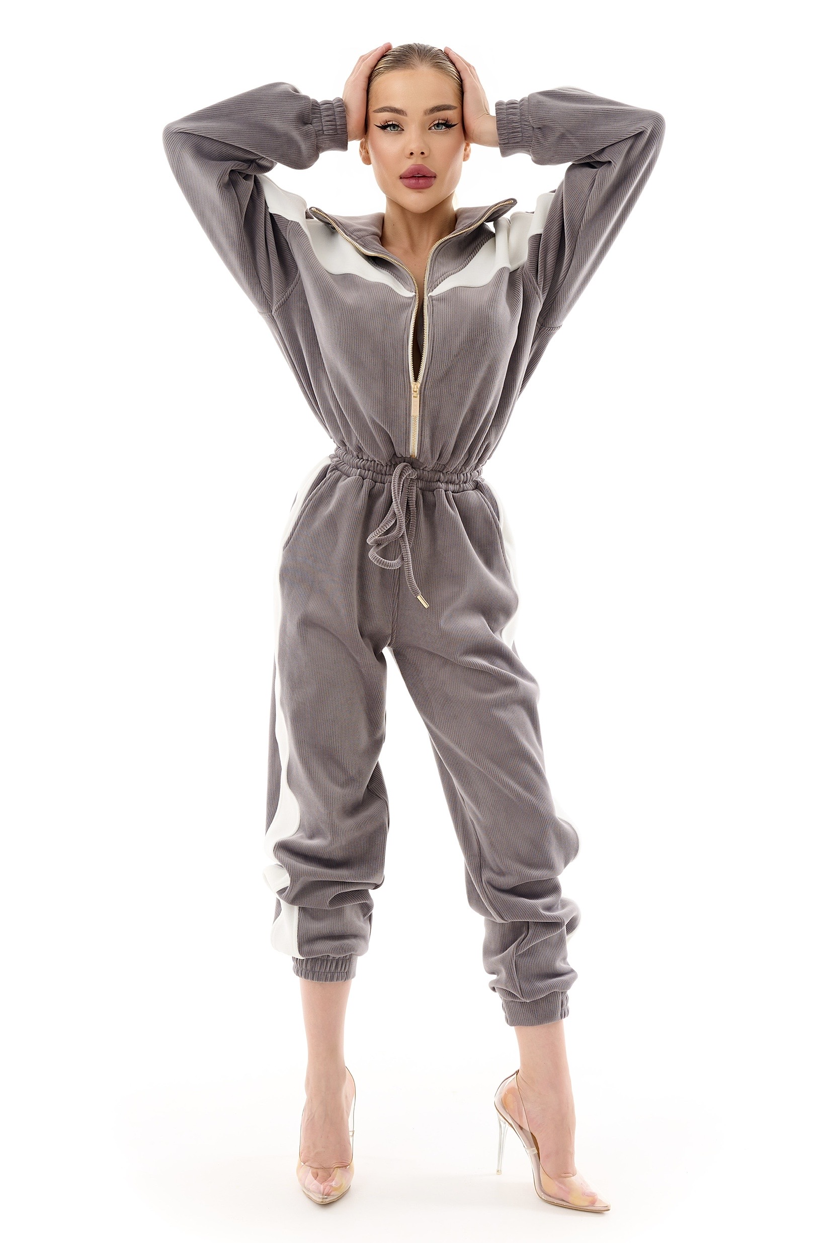 Теплий велюровий комбінезон SAMPLE SALE сірий із молочними вставками