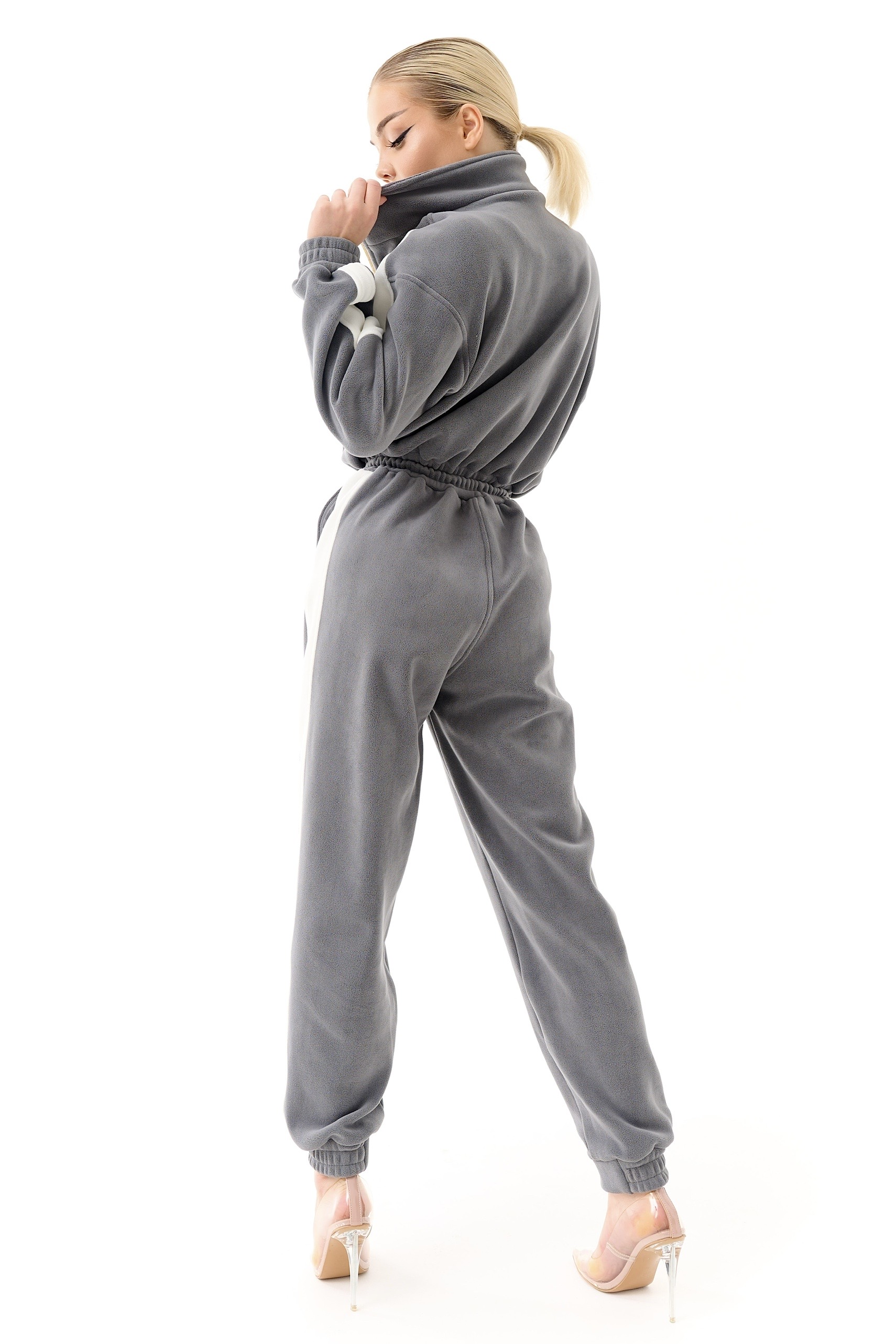 Теплий флісовий комбінезон SAMPLE SALE сірий із молочними вставками