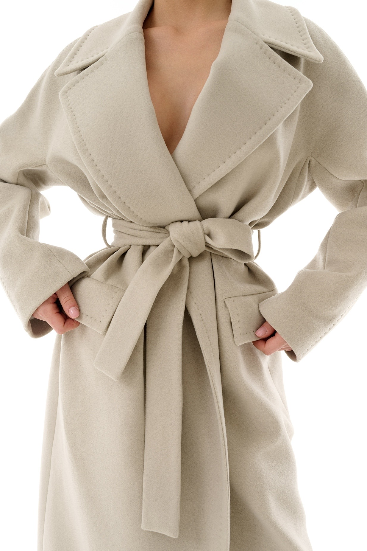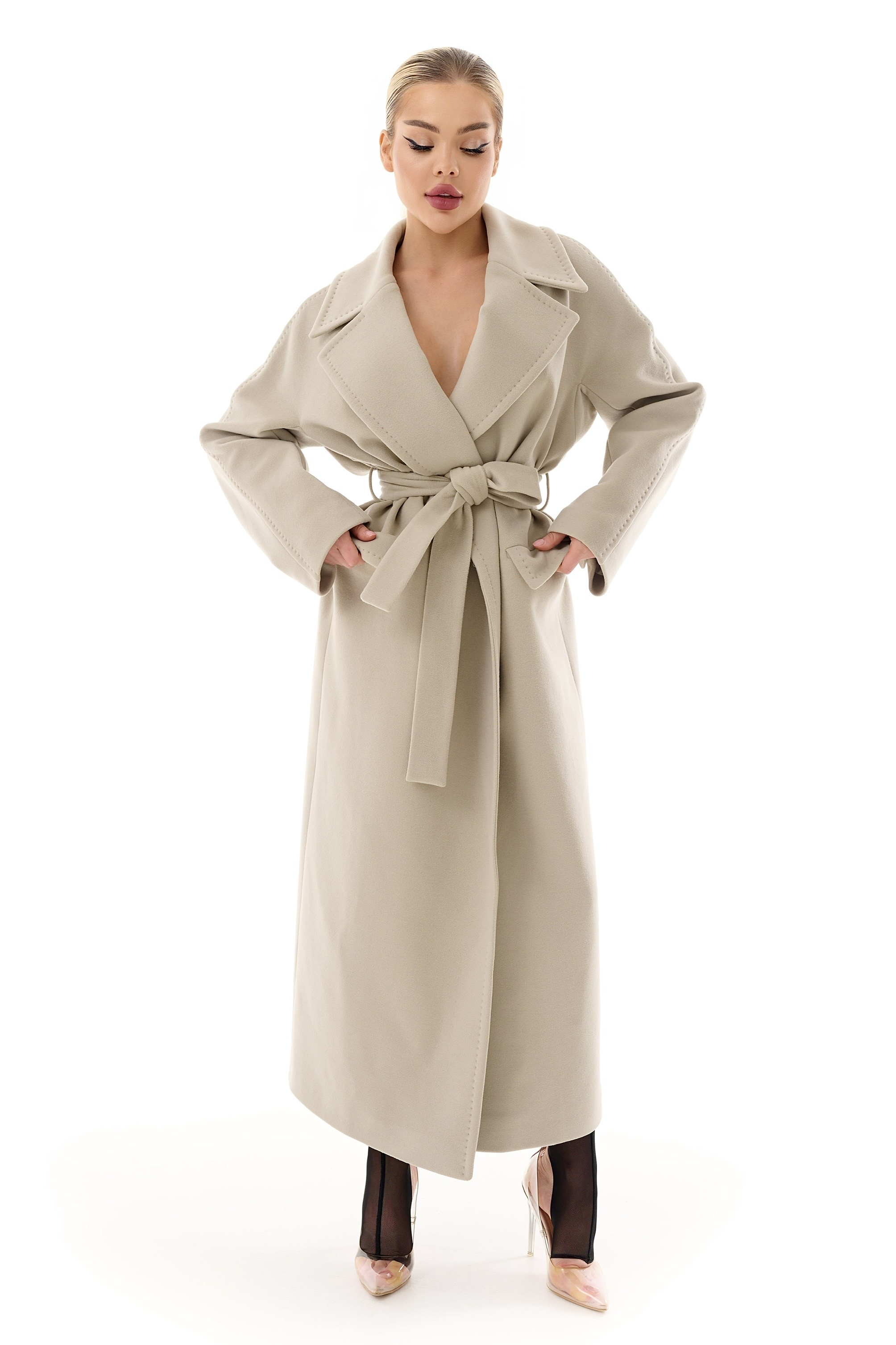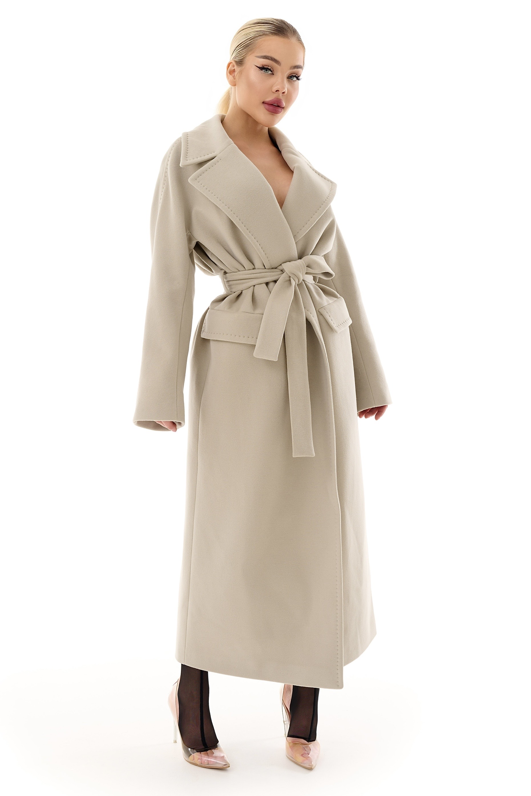 Стильное длинное пальто в актуальном оливковом оттенке – элегантная база для осенне-весеннего гардероба. Прямой крой в сочетании с поясом красиво подчеркивает талию и создает утонченный женственный силуэт.